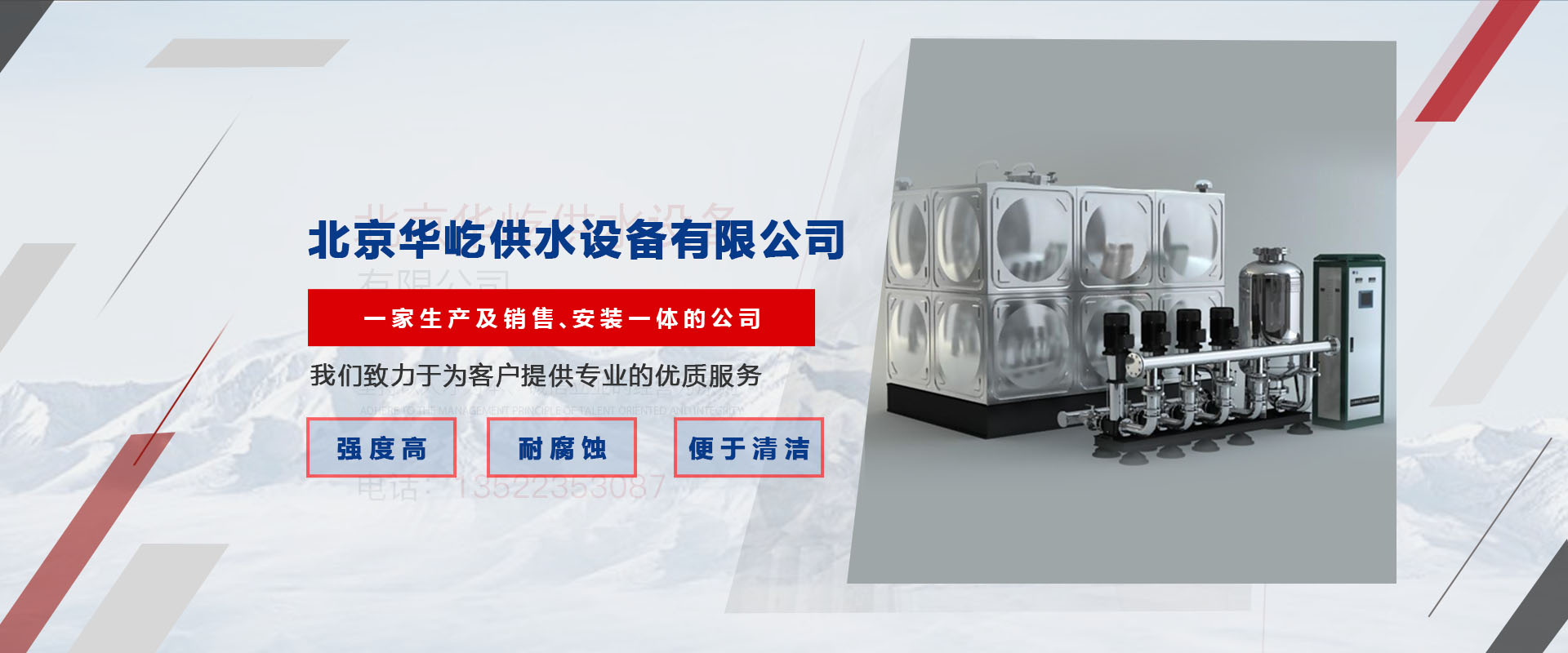 北京華屹供水設備有限公司,主要產品:不銹鋼水箱、玻璃鋼水箱、搪瓷鋼板水箱、無負壓供水設備、恒壓供水設備、消防供水設備、水處理設備,供水設備改造和設備保養服務等。基地設立于風景秀麗的北京市?興區禮賢鎮元平北路?貿區?興機場?區服務中??層
